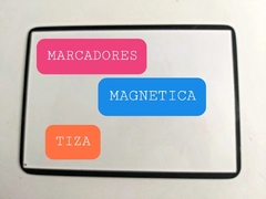 La superficie blanca se escribe con marcadores para pizarra blanca y es magnética.